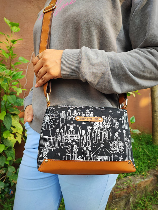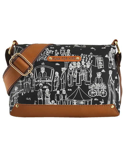 Combo Offers : Music Border Box White Sling Bag & Loop Black Wallet